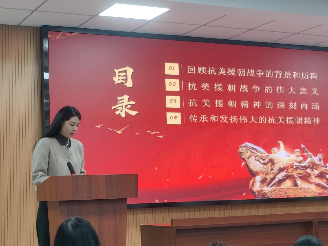 萬奕、楊瓊瑋等選手分別從時(shí)代背景、形成過程、豐富內(nèi)涵、當(dāng)代啟示等方面學(xué)習(xí)分享了延安精神、西柏坡精神、抗美援朝精神、三牛精神等十幾項(xiàng)偉大精神。其中余茵同學(xué)以抗美援朝戰(zhàn)爭為切入點(diǎn),按照時(shí)間順序重點(diǎn)介紹了朝鮮戰(zhàn)爭爆發(fā)、中國派兵入朝、抗美援朝幾次重大戰(zhàn)役、中國人民志愿軍取得勝利、休戰(zhàn)和談等戰(zhàn)爭歷程,深入探尋了抗美援朝戰(zhàn)爭形成的全景過程以及抗美援朝精神的深刻內(nèi)涵。她表示,通過對抗美援朝精神的學(xué)習(xí)和了解,從中汲取了力量和方向,明確了自身定位,提升了自身政治修養(yǎng)和政治素質(zhì)。