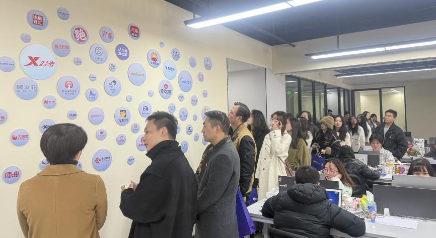 11月28日,湖北大學(xué)藝術(shù)與設(shè)計(jì)學(xué)院赴武漢文創(chuàng)大廈開展“黨旗飄揚(yáng)強(qiáng)實(shí)踐,一融雙高促發(fā)展”主題黨日活動,實(shí)地走訪文創(chuàng)類企業(yè)并開展深度交流。湖北華商文化創(chuàng)意產(chǎn)業(yè)有限公司總經(jīng)理譚勇、運(yùn)營經(jīng)理余玉巖、武漢昌創(chuàng)智成管理咨詢有限公司總經(jīng)理陳桂麗、武漢倉藤傳媒有限公司人事經(jīng)理張凱文,湖北大學(xué)藝術(shù)與設(shè)計(jì)學(xué)院黨委書記葉秀娟、黨委副書記談玉婷、副院長潘鋒、視覺傳達(dá)與產(chǎn)品設(shè)計(jì)系教工黨支部書記劉卷、支部黨員教師和研究生黨員代表等參加活動。