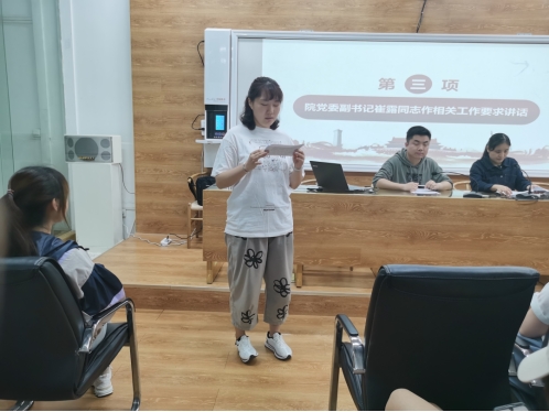 活動(dòng)中,院黨委副書(shū)記崔露提出,在場(chǎng)的黨史宣講團(tuán)代表和各團(tuán)支部支委,要“仰望星空,腳踏實(shí)地”,將個(gè)人進(jìn)步、學(xué)習(xí)成長(zhǎng)與國(guó)家命運(yùn)、黨的發(fā)展緊密相連,團(tuán)結(jié)引領(lǐng)更多同學(xué)立大志、明大德、成大才、擔(dān)大任。在此次活動(dòng)的實(shí)效方面,要明確角色,思考問(wèn)題,解決支部活動(dòng)如何進(jìn)一步入腦入心,達(dá)到全員參與,思想育人的目標(biāo)。