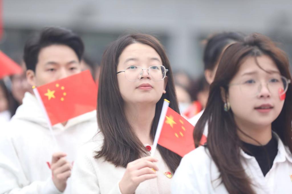 七十五載風(fēng)雨兼程,七十五載砥礪奮進(jìn)。國歌激昂,國旗招展。10月1日上午,湖北大學(xué)在思睿廣場舉行國慶升旗儀式,慶祝中華人民共和國成立75周年。我院黨委書記葉秀娟,院長葉云、副院長潘鋒、余日季,各輔導(dǎo)員及學(xué)院學(xué)生代表參加升旗儀式。