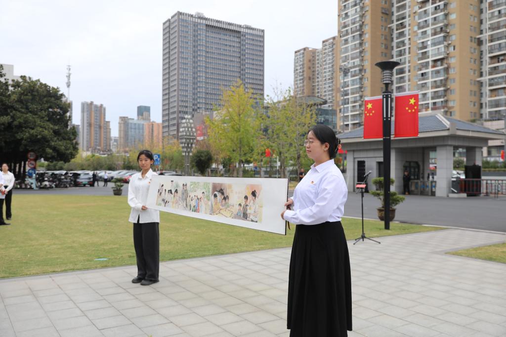 李菲兒在發(fā)言過程中,展示了我院“藝術(shù)夢工廠——藝青童行”社會實踐團(tuán)隊赴黃岡市開展了為期16天的創(chuàng)意美育課程所創(chuàng)作的精彩藝術(shù)畫卷。同學(xué)們結(jié)合支教實際,用畫筆描繪出社會實踐中的溫情時刻,用畫筆為支教事業(yè)增添了絢麗色彩。