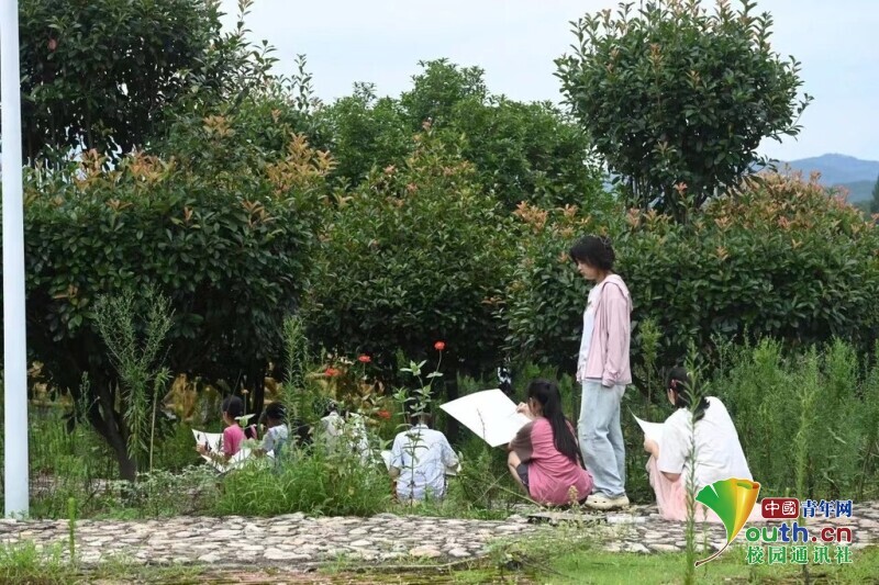 圖為外出寫(xiě)生課堂中團(tuán)隊(duì)成員指導(dǎo)繪畫(huà)。