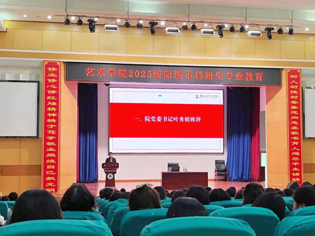 11月19日,2023級(jí)陽(yáng)邏本科生新生專業(yè)教育暨“美美與共——湖北大學(xué)藝術(shù)學(xué)院美育開(kāi)放日”活動(dòng)在三號(hào)樓學(xué)術(shù)報(bào)告廳拉開(kāi)帷幕。院黨委書(shū)記葉秀娟致歡迎辭,院長(zhǎng)許開(kāi)強(qiáng)教授作學(xué)院整體情況介紹和學(xué)生發(fā)展指導(dǎo),活動(dòng)由院黨委副書(shū)記崔露主持。