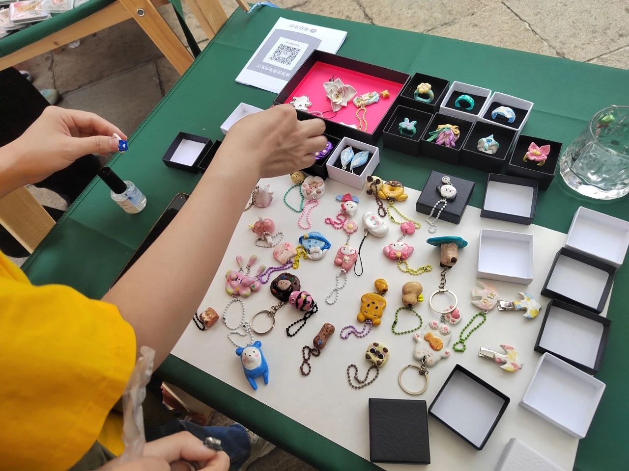 活動現(xiàn)場主要是展示同學(xué)們自己設(shè)計(jì)和創(chuàng)作的荊楚文創(chuàng)產(chǎn)品,部分產(chǎn)品進(jìn)行售賣的環(huán)節(jié)也讓同學(xué)們體驗(yàn)到自主創(chuàng)業(yè)的快樂。中秋國慶期間前往黃鶴樓的游客被同學(xué)們的文創(chuàng)小產(chǎn)品吸引,或駐足觀看,或購買留念。