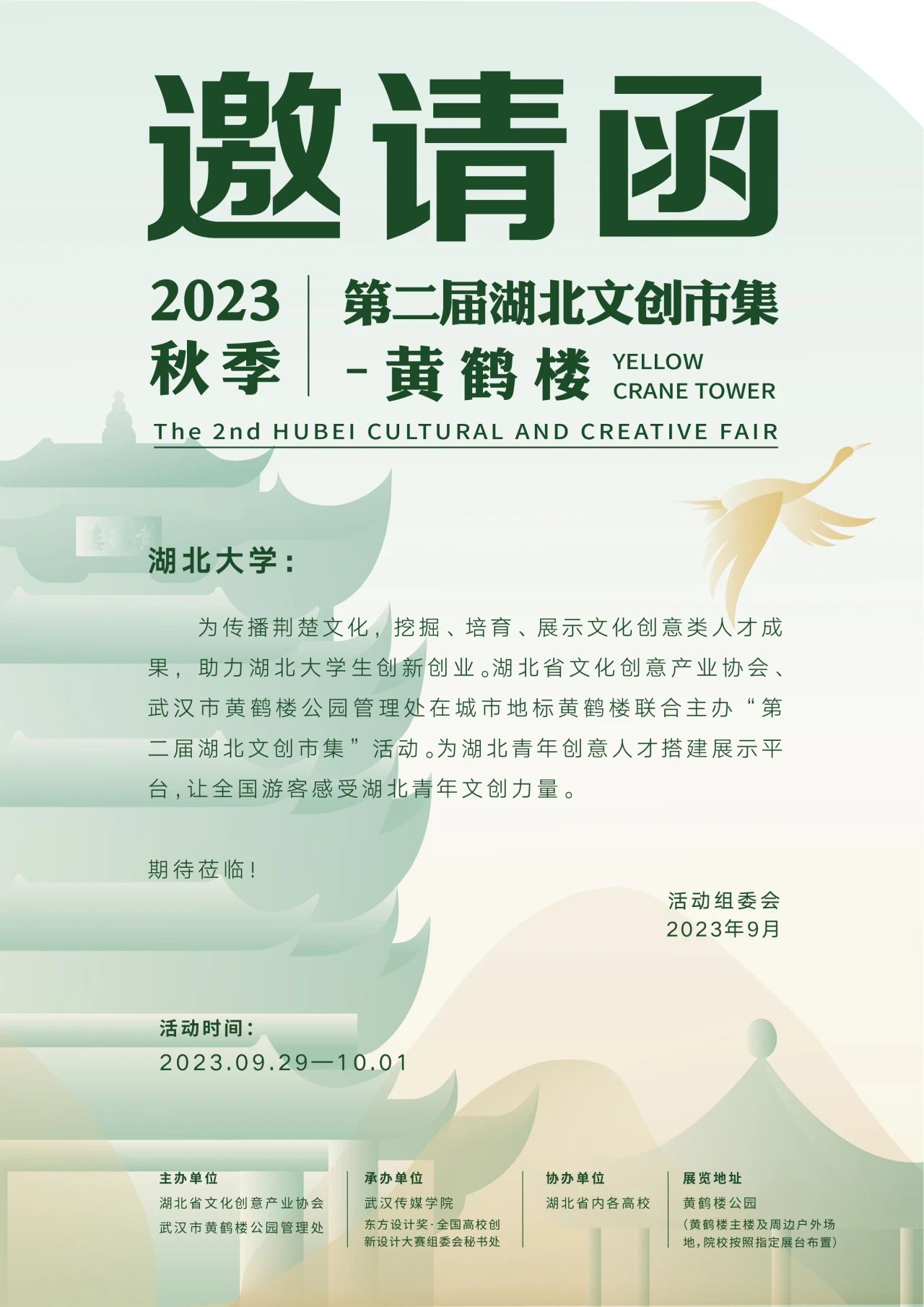 9月29日—10月1日,正值中秋國慶假期,江城武漢喜氣洋洋,海內(nèi)外游客云集黃鶴樓等景區(qū)。我院師生參加的2023第二屆“湖北文創(chuàng)市集·黃鶴樓文創(chuàng)活動”在黃鶴樓景區(qū)熱鬧開幕。