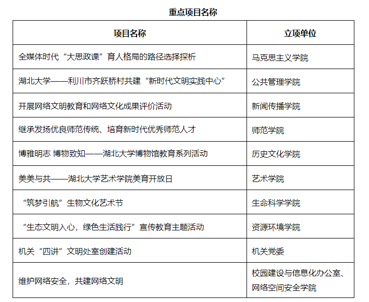 近日,學(xué)校公布2023年度校級精神文明建設(shè)活動項(xiàng)目立項(xiàng)結(jié)果,藝術(shù)學(xué)院《美美與共——湖北大學(xué)藝術(shù)學(xué)院美育開放日》獲評重點(diǎn)項(xiàng)目。據(jù)悉,為進(jìn)一步提升我校精神文明建設(shè)水平,扎實(shí)有效推進(jìn)湖北省文明校園再創(chuàng)工作,學(xué)校開展了2023年度精神文明建設(shè)項(xiàng)目立項(xiàng)申報(bào)工作。自活動開展以來,藝術(shù)學(xué)院黨委積極組織,基礎(chǔ)課部認(rèn)真申報(bào),向?qū)W校提交材料。經(jīng)專家評審,共有校級立項(xiàng)重點(diǎn)項(xiàng)目10項(xiàng)、一般項(xiàng)目7項(xiàng)。