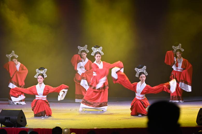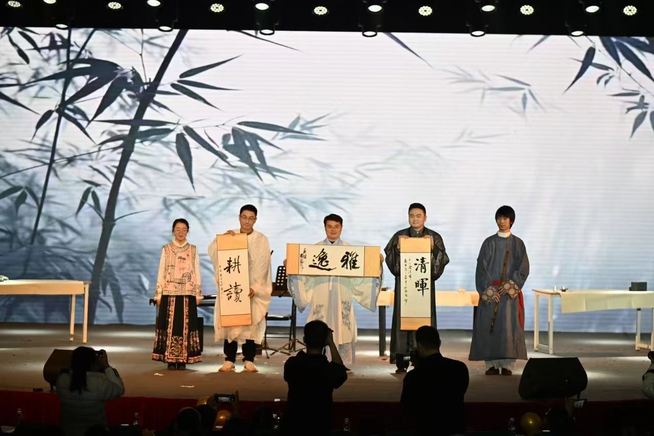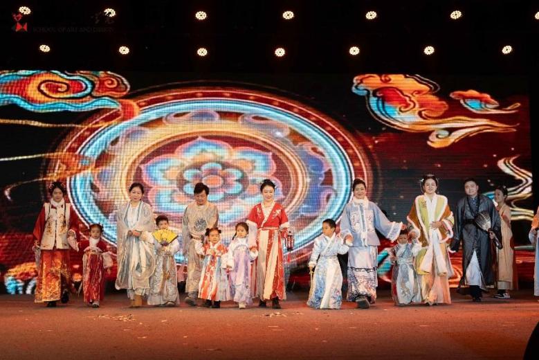 美育文化思政課上,大一新生表演漢舞《五星出東方》、小品《再見(jiàn)老師》,湖北大學(xué)研究生支教團(tuán)成員張怡、王魯陽(yáng)、李菲兒等以親身經(jīng)歷演繹情景劇《我的西部支教故事》,學(xué)院教授師生代表羅海東、劉立士、許詡等帶來(lái)書(shū)法藝術(shù)展示《繪夢(mèng)空間》,院工會(huì)展示師生親子華服表演《大美中華》,梨園戲曲社表演《貴妃醉酒》《太真外傳》片段,院學(xué)生會(huì)表演群舞《相親相愛(ài)一家人》等,全院師生同臺(tái)共赴美的盛會(huì)。