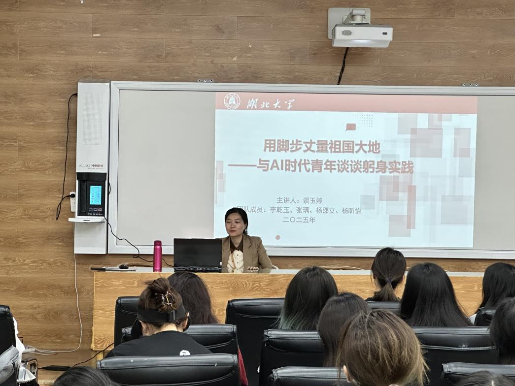 院黨委副書記談玉婷老師以《用腳步丈量祖國大地--與AI時代青年談談躬身實踐》為主題,強調青年應當在實踐中提升自己的能力,順應時代發(fā)展潮流,“知行合一”等。談玉婷老師向同學們寄予厚望,希望同學們堅定信念、積極實踐、敢于創(chuàng)新。