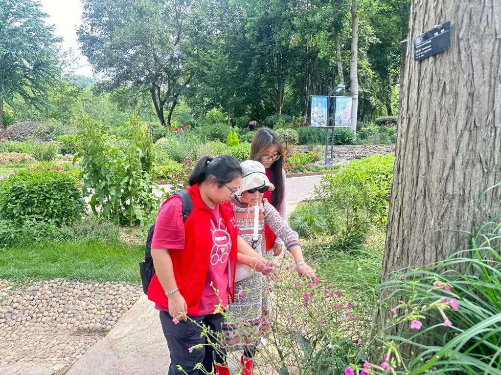 5月13日,二團(tuán)小組有幸跟著糧道街道殘聯(lián)一同前往武漢植物園。活動(dòng)中,團(tuán)員們以1v1的形式協(xié)助盲人朋友游覽園區(qū),深入觀察和記錄了他們?cè)谛袆?dòng)與觀賞過(guò)程中面臨的痛點(diǎn)。首先,盲人在行進(jìn)時(shí)普遍依賴觸覺和聽覺,但園區(qū)內(nèi)的無(wú)障礙設(shè)施仍有不足,如部分坡道過(guò)陡、盲道被障礙物阻斷等問(wèn)題,導(dǎo)致行動(dòng)不便。其次,在觀賞環(huán)節(jié),盡管團(tuán)員們通過(guò)語(yǔ)言描述植物特征,但缺乏觸覺體驗(yàn)(如觸摸葉片、花朵)和嗅覺引導(dǎo)(如香草植物的氣味),使得盲人難以全面感受自然之美。此外,盲人對(duì)環(huán)境變化的敏感度較高,嘈雜的背景音和人群擁擠容易引發(fā)不安。通過(guò)此次活動(dòng),團(tuán)員們不僅深刻體會(huì)到盲人群體的特殊需求,也為未來(lái)設(shè)計(jì)更人性化的無(wú)障礙設(shè)施和導(dǎo)覽服務(wù)提供了寶貴參考。此次志愿行動(dòng)不僅是一次助殘實(shí)踐,更是一次深刻的社會(huì)觀察與反思;既踐行了“設(shè)計(jì)向善”的專業(yè)理念,更讓團(tuán)員深刻理解無(wú)障礙設(shè)計(jì)的核心是“感知代償”。