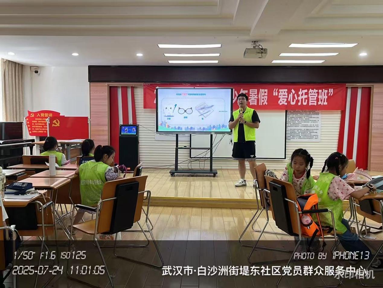 2025年7月24日,武漢白沙洲街堤東社區(qū)黨員群眾服務(wù)中心內(nèi),一場關(guān)于“垃圾重生”的科普風(fēng)暴持續(xù)升溫——湖北大學(xué)藝術(shù)與設(shè)計學(xué)院青年志愿者指導(dǎo)中心的學(xué)子們,將“零廢棄日”理念引入愛心托管班,運(yùn)用“沉浸式互動+藝術(shù)化表達(dá)”,讓垃圾分類知識躍出屏幕、融入生活。