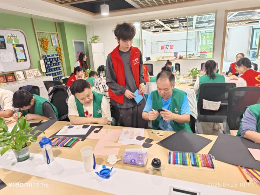 活動(dòng)現(xiàn)場(chǎng),溫暖的氛圍在無(wú)聲流淌。志愿者們俯身指導(dǎo)的專(zhuān)注、參與者完成作品后綻放的笑容、彼此之間豎起的大拇指,構(gòu)成了一幅比任何畫(huà)作都動(dòng)人的秋日暖景。活動(dòng)結(jié)束后,大家在志愿者的引導(dǎo)下,一同整理了創(chuàng)作場(chǎng)地,并將產(chǎn)生的垃圾進(jìn)行了正確分類(lèi)投放,用實(shí)際行動(dòng)踐行綠色承諾。