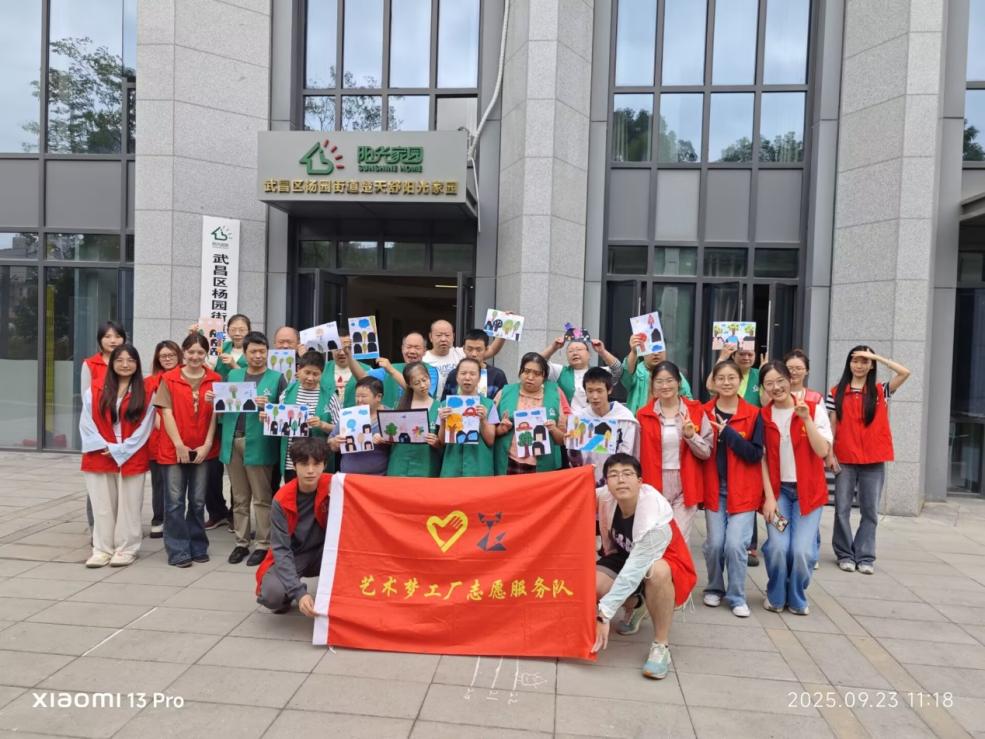 秋分時(shí)節(jié),天高氣爽。在武漢市陽(yáng)光街陽(yáng)光花園社區(qū)一間灑滿(mǎn)陽(yáng)光的活動(dòng)室里,沒(méi)有喧囂,只有畫(huà)筆與紙張摩擦的沙沙聲和偶爾迸發(fā)的歡聲笑語(yǔ)。2025年9月23日上午,湖北大學(xué)藝術(shù)與設(shè)計(jì)學(xué)院的志愿者們用色彩和耐心,帶領(lǐng)一群特殊的“藝術(shù)家”,將秋日的靜美與內(nèi)心的豐盈定格在一幅幅畫(huà)作中。