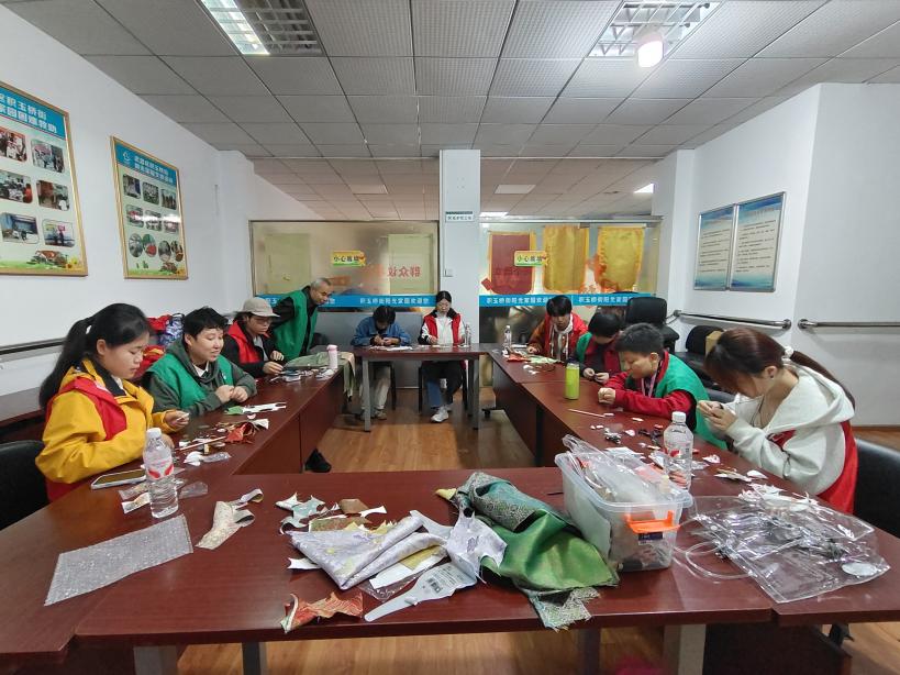 2025年11月14日上午,武昌區(qū)積玉橋陽(yáng)光家園社區(qū)活動(dòng)中心內(nèi)暖意融融。湖北大學(xué)藝術(shù)與設(shè)計(jì)學(xué)院青年志愿者行動(dòng)指導(dǎo)中心的志愿者們,攜手社區(qū)智力障礙老年群體,開(kāi)展了一場(chǎng)以“變廢為寶,銀齡生輝”為主題的非遺手作活動(dòng)。活動(dòng)巧妙融合“宋錦非遺技藝”與“垃圾分類實(shí)踐”,引導(dǎo)老年居民利用廢舊布料制作精美發(fā)飾,在傳承傳統(tǒng)文化的同時(shí),傳遞綠色環(huán)保理念。