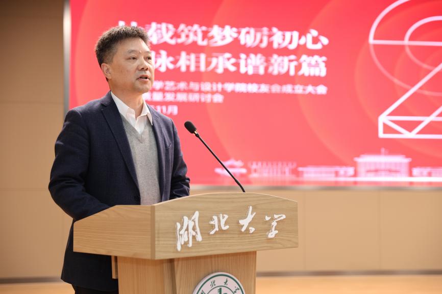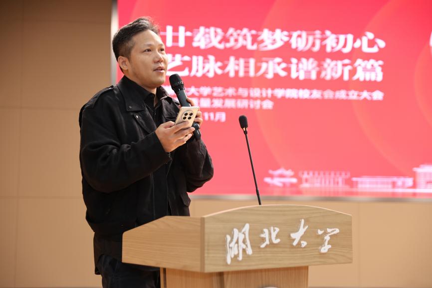校黨委副書(shū)記侯勇致辭指出,藝術(shù)與設(shè)計(jì)學(xué)院二十年風(fēng)雨兼程,實(shí)現(xiàn)了跨越式發(fā)展,藝術(shù)與設(shè)計(jì)學(xué)院校友會(huì)的成立,標(biāo)志著廣大藝術(shù)與設(shè)計(jì)領(lǐng)域校友有了凝聚情感、匯聚智慧、共促發(fā)展的官方平臺(tái)與堅(jiān)實(shí)紐帶。面對(duì)“兩個(gè)大局”的時(shí)代背景,站在“雙一流”建設(shè)的關(guān)鍵節(jié)點(diǎn),需要立足“大格局”,在服務(wù)學(xué)校“雙一流”建設(shè)中展現(xiàn)新作為,錨定“高目標(biāo)”,在構(gòu)筑湖北文化高地上彰顯新?lián)?dāng),織密“情感網(wǎng)”,在打造一流校友共同體上探索新路徑。