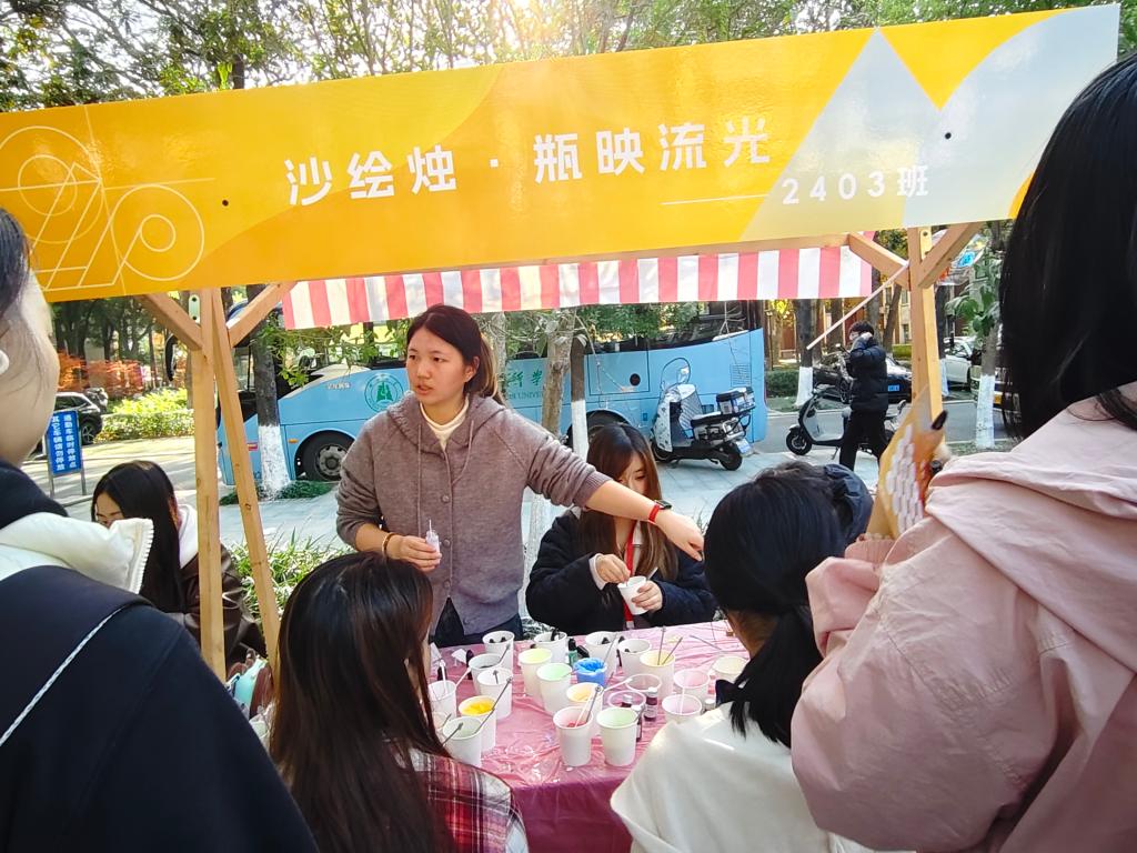 2025年11月29日,第五屆湖北大學美育開放日系列活動在藝術與設計學院前廣場正式開幕。活動由湖北大學黨委宣傳部、學生工作部(處)、本科生院、共青團湖北大學委員會聯(lián)合主辦,藝術與設計學院承辦。本屆開放日活動主題為“美續(xù)華章”,在學院前廣場設置了32個展位,呈兩個環(huán)形排列,非遺漆扇、植物錘染、創(chuàng)意扎染、香氛工坊等眾多創(chuàng)意性藝術活動吸引了師生們參與。